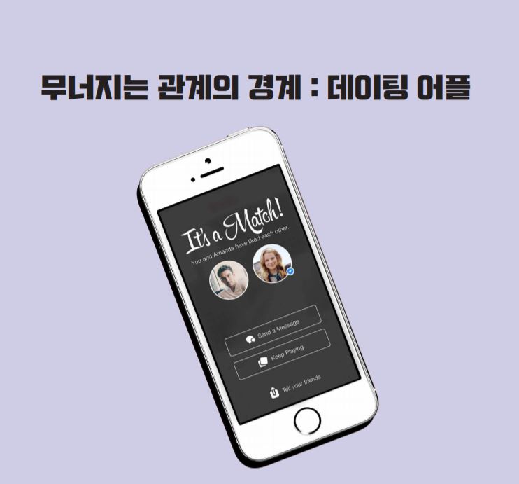 미국의 한 조사결과에 따르면 최근 미국 내 성사된 결혼 중 1/3은 온라인을 통해 맺어진 인연이었다. 온라인이 생활의 근거지가 되며, 사람들을 만나고 관계를 맺는 방식이 변화하고 있다. 아직 데이팅 어플리케이션에 대한 인식은 부정적인 편이나, 그러한 사회 분위기와는 대조적으로 한국에서 역시 온라인 데이팅 시장규모는 커지고 있다.