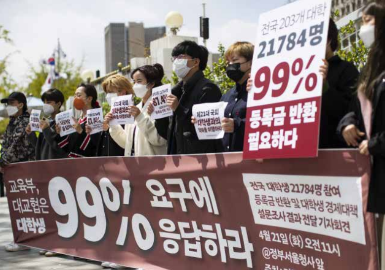 학생들의 등록금 반환 요구가 거세다. 코로나 19 확산세의 장기화로 많은 대학에서 1학기 전체를 비대면 강의로 대체했기 때문이다. 잠깐 화제에 올랐다가 식는 가벼운 논의가 아니다. 전국대학학생회네트워크(전대넷)를 주축으로 모인 ‘등록금 반환 운동본부’에는 중앙대 서울캠 총학생회를 포함한 전국 42개의 총학생회, 25개의 단과대 총학생회, 3개의 청년단체 등이 모였다. 학생 사회 목소리가 하나로 뭉쳤고, 학생들의 요구에 응하는 대학이 등장하기 시작했다. [1]6월 15일, 건국대학교는 2학기 등록금을 감면하는 방법으로 등록금을 부분 반환하기로 했다고 밝혔다. 벌써 봄여름 학기가 마무리되는 시기지만, 학생들의 요구는 그칠 줄 모른다. 학생들의 요구가 사그라들지 않는 이유는 무엇일까?