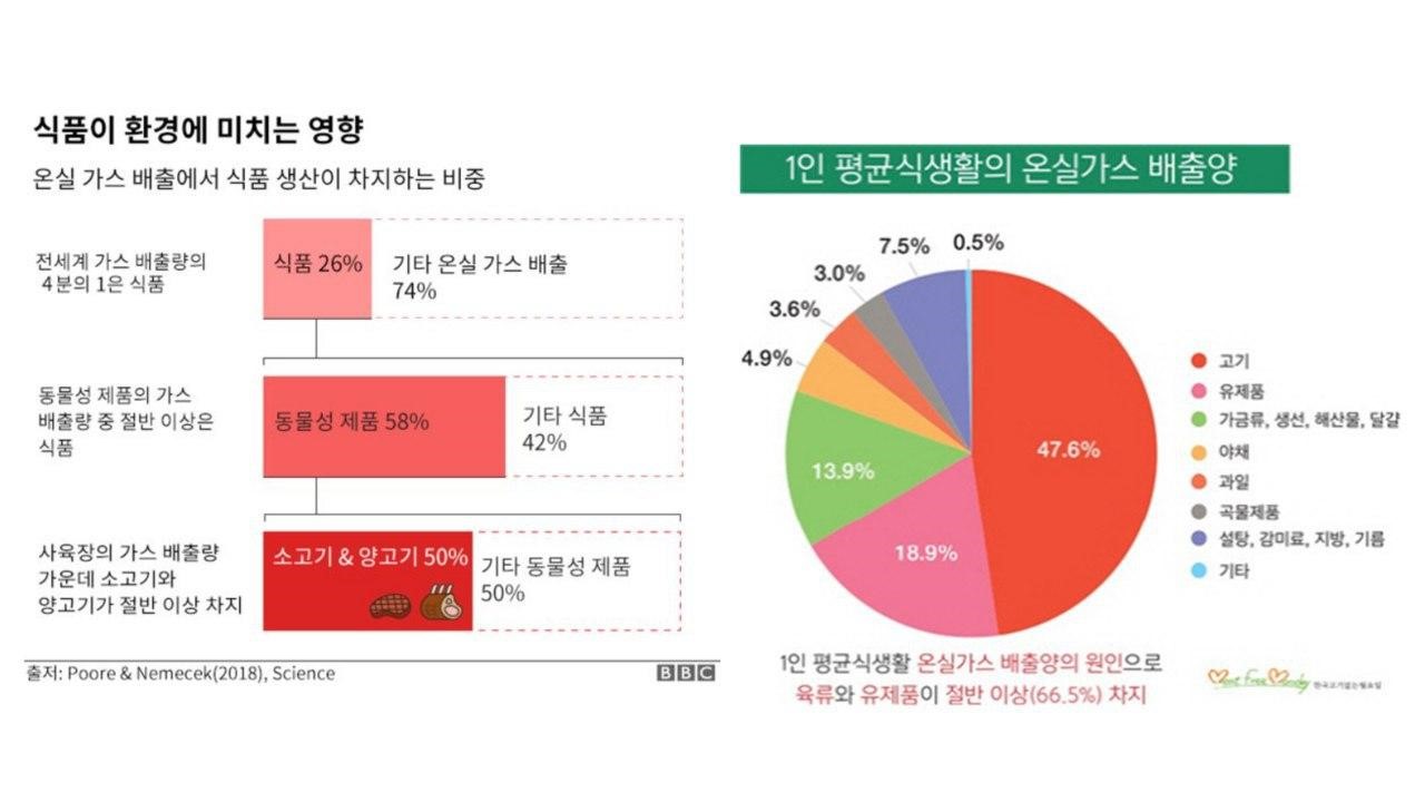 소현: 우선, 축산업이 항공 운송보다도 탄소 배출량이 많아요. 우리가 축산업에서 배출하는 탄소는 20.4%인데 항공운송 2%거든요. 게다가 작년 UN의 IPCC[5] ‘기후변화와 토지 특별 보고서’를 보면, 지구 상의 인간이 조금이라도 채식을 실천하면, 심지어 완전 채식이 아닌 플렉시테리언 정도라도, 탄소 배출을 엄청나게 줄일 수 있어요. 그래서 채식이 우리가 지금 하고 있는 다른 노력들만큼이나 유의미하다고 생각했어요. 저도 제가 지금 가장 쉽게 탄소 배출을 줄일 수 있는 방법 중 하나가 채식이라고 생각되어 실천하고 있습니다. 채식 추천해요. (웃음)