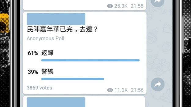 홍콩 시위에는 시위대를 이끌어가는 지도자도, 수많은 이들을 한데 모으는 조직도 없다. 그들은 텔레그램에서 익명으로 의견을 나누고, 모이고, 다시 흩어진다. 다양한 텔레그램 채널이 운영되고, 이들은 각자의 역할을 하며 시위에 관여한다. 이들 중 하나인 ‘Dad finds boy’에서는 20만 명이 넘는 사람들이 모여 경찰의 움직임은 물론, 경찰과 정부 관리들의 생년월일과 전화번호, 주소, 가족의 이름과 주소를 비롯한 개인 정보를 공유했다. 크라우드 펀딩 캠페인을 통해 의료비와 법률 비용을 모금하기도 했다.[2]