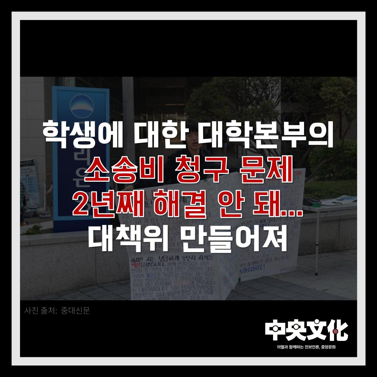 중앙대 대학본부를 상대로 한 징계 처분을 무효로 해달라는 소송에 패소해 930만 원의 소송비 부담을 지게 된 학생의 소송비 문제가 2년이 지나도록 해결되지 않은 것으로 밝혀졌다. 이에 해당 학생과 같이 활동했던 동문들이 대책위원회를 꾸려 대응에 나섰다.