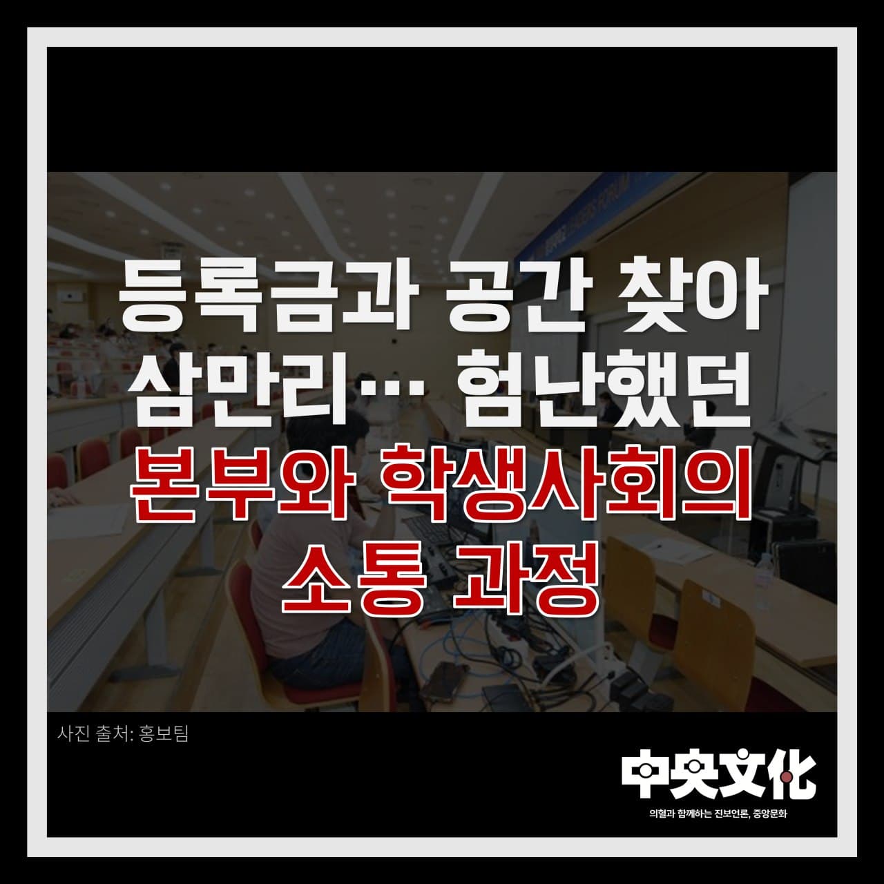 | 2019.11.26. [보도] 학생지원팀, 홍콩지지 대자보 검인 거부 ... 위헌적 검열기준 문제 제기 잇따라 (0) | 2020.10.15 |