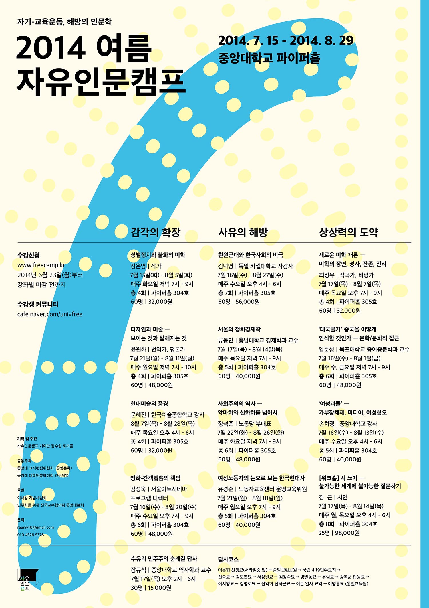 대표적인 중앙대 기반의 제도권 밖 단체로 꼽히던 건 2010년에 결성된 ‘자유인문캠프’다. ‘자유인문캠프’는 ‘자기-교육 운동, 해방의 인문학’이라는 슬로건을 내걸고 다양한 주제의 세미나와 강의를 열었다. 또한, 학내외 단체와 활발히 연계하여 여러 의제에 목소리를 냈으며, <잠망경>이란 독립저널을 발간하여 학내에 배포함으로써 대학과 학생사회에 대한 감시를 늦추지 않았다. 현재는 그 활동이 다소 뜸해졌지만 ‘자유인문캠프’는 한동안 획기적인 자치 플랫폼으로 자리했다. 이처럼 이전부터 제도권 밖에서는 다양한 시도가 있었다.