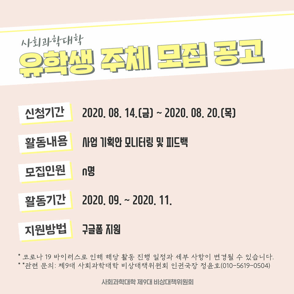 - <중앙문화> 79호, “2020, 학생자치 안녕하셨습니까”, 2020.12. 참고 [본문으로]