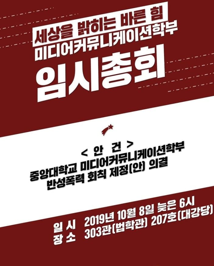 미디어커뮤니케이션학부도 작년에 임시총회를 열어 반성폭력회칙을 제정했다. 당시 학생회장이었던 이상민 전 학생회장은 반성폭력회칙을 통해 모든 구성원이 학생자치의 주체로서 평등하게 설 수 있다고 생각했다. 그는 반성폭력회칙 제정 준비 모임의 공개적인 모집에 나섰고, 매주 회의를 가진 끝에 나온 초안을 토대로 두 차례 의견 수렴회를 가졌다. 공감대 형성을 위해 몇 차례 걸친 세미나를 진행하기도 했다. 왜 반성폭력회칙을 만드는지, 학내에서 공론화된 성폭력 사건들은 무엇이 있었는지, 총여학생회 폐지와 성평등위원회 설립은 어떤 역사를 지니는지, 피해자중심주의와 2차 가해라는 개념은 무엇인지 등을 공유했다. 이상민 전 학생회장은 이런 과정을 통해서 반성폭력회칙이 필요한 의미를 깊이 새길 수 있다고 전했다.