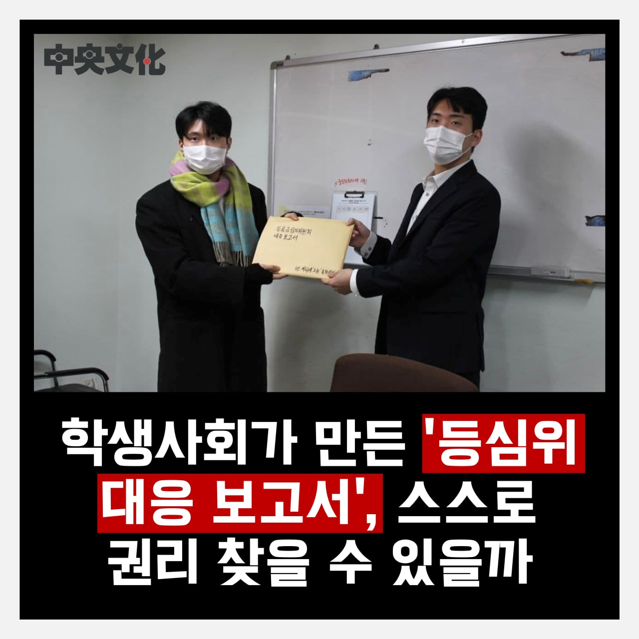 지난 22일 ‘등록금심의위원회(등심위) 대응 TF’가 서울캠퍼스 총학생회장에게 ‘등심위 대응 보고서’를 전달했다. 등심위 대응 TF는 등록금 반환을 위해 다방면으로 활동 중인 ‘프로젝트 탈곡기’가 조직했다. 프로젝트 탈곡기 구성원과 인문대·사과대 학생회 등이 참여한 등심위 대응 TF는 21-1 등록금과 20-2 등록금 환불에 대해 논의하고, 해당 내용을 등심위에 학생 대표로서 참석하는 총학생회장에게 전달하는 것을 목표로 하고 있다. 대표로 총학생회실에 방문한 정윤호 학생(정치국제학과 3)과 표지훈 학생(정치국제학과 1)은 총학생회장단에게 보고서를 직접 전달하며 취지와 내용을 간략히 설명했다. 안성캠퍼스 총학생회장에게는 1월 24일 이메일을 통해 전달했다.