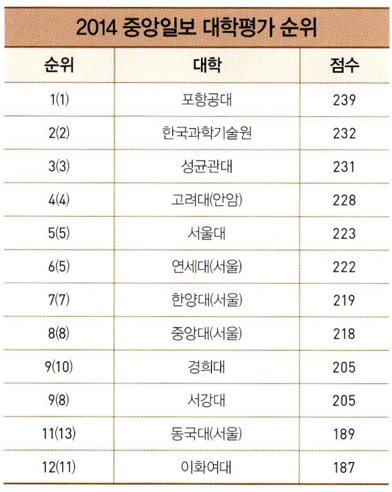 충분히 좋아 보인다. 이 기세라면 한양대도 따라잡을 수 있 겠다. 자세히 보면 서울대와 5점 차이밖에 안 난다. 이대로라면 2018년엔 중앙대가 꿈꾸는 '종합평가 5위’의 성적을 달성할 수 있 을 것 같다.