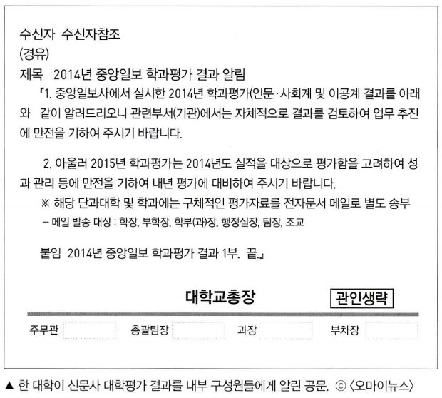 삼성 총장 추천제와 같은 맥락에서 우리가 중앙일보 대학평가 를 공신력 있는 대학평가로 인정하면 대학평가에서 서열화되는 위 계질서를 그대로 인정하는 꼴이 된다 그로 인해 대학들이 순위 경쟁을 위한 제 살 깎기 경쟁에 돌입하게 되면. 학내에 원하지도 않는 영어강의가 늘어나는 등 고스란히 학생들에게 피해가 전가 되고 취업률 지표에서 취약한 학과들이 주로 구조조정 대상이 될 것이다 그러나 이에 대한 피해는 그 누구도 책임지지 않는다.