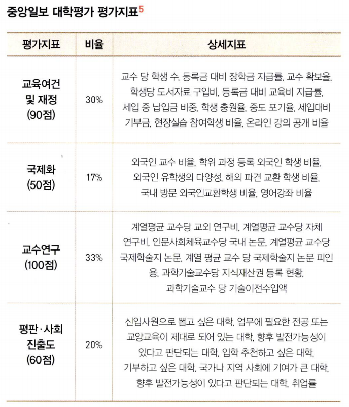 이러한 취지에 따라서 중앙일보는 20년간 언론사 대학평가를 주도해왔다. 중앙일보 대학평가가 본래 의도한 대로 대학 수요자 에게 올바른 정보를 제공했다면 누구도 이의를 제기할 사람이 없 을 것이다. 하지만 대학평가가 수요자에게 불충분한 정보를 제공 해왔고, 대학사회의 발전을 이끌지 못하고 오히려 저해해왔다면 충분히 문제로 지적될 만하다.