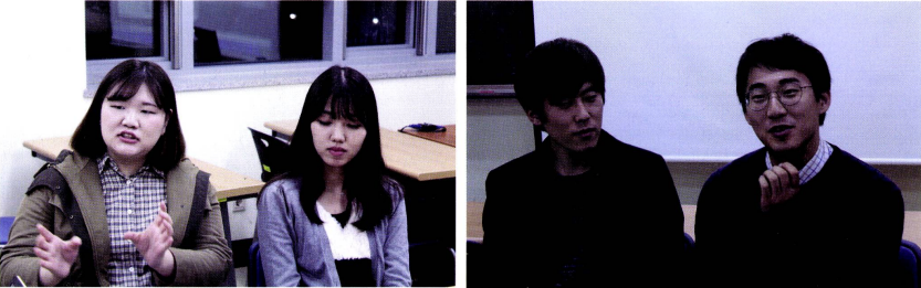 신민정: 저는 지구인에게 고맙다는 말을 하고 싶어요. 저는 원래 개인적인 사람이었어요. 그런데 여기 들어와서 보니 이렇게 남들 을 걱정하는 사람들이 없는 거에요. 주변에 대부분 자기 살기 바 쁜 사람들이었지 지구인처럼 이타적인 사람들은 처음 봤어요. 저 도 덩달아 이타적인 사람이 되는 것 같아서 기분이 좋아요. 그리 고 김양지 교수님께도 꼭 감사하다는 말을 전하고 싶어요. 교수님 덕분에 여기도 들어오게 되었거든요.