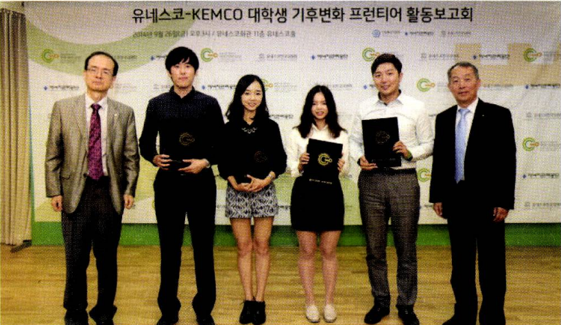 지구인: 그건 유네스코한국위원회와 에너지관리공단이 공동주관 한 ‘대학생 기후변화 프런티어’에요. 11개 팀이 뽑혀서 같이 기후 변화에 대한 교육을 받았어요. 워크샵을 3번 갔어요. 강연도 듣고 부안 신재생 에너지 센터나 제주도의 스마트그리드단지 등을 견학 하기도 했죠. 제주도는 탄소 제로섬을 만들려고 추진 중이거든요. 제주도에 풍부한 태양, 풍력 에너지를 활용하려고 하고 있죠. 워크 숍을 갔다 와서 최종적으로 보고서를 냈고 발표를 했는데 최우수 팀으로 뽑혔어요. 최우수 1팀. 우수 3팀은 올해 페루 리마에서 열 리는 기후 변화 당사자총회에 참관할 기회가주어져요.