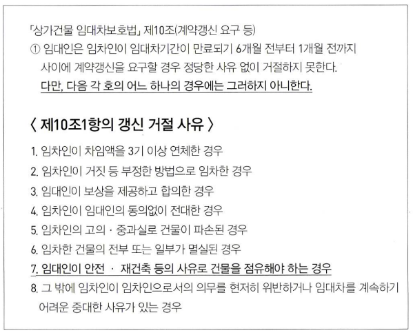 “여기 계약할 때 부동산에 물어봤다. 부동산도 여기가 오래 장 사할 수 있는 안전한 건물이라고 말했다. 그러나 알고 보니 이 건 물이 매물로 나온 지오래 됐고, 저를중계한 부동산이 이 건물을 팔았더라:’ 황당하기 짝이 없는 일이었다. 오래 장사할 수 있다는 중개업자의 말과 달리 가게를 연 지 9개월 만에 쫓겨날 위기에 처 했기 때문이다. 게다가 재건축을 사유로 니키께 되면, 다음 임차인 을 주선하지 못하기에 권리금을 회수하지 못한다 반면, 재건축을 마친 건물주는 새로 임차인을 들이면서 권리금과 높아진 임대료 를 챙기게 된다.