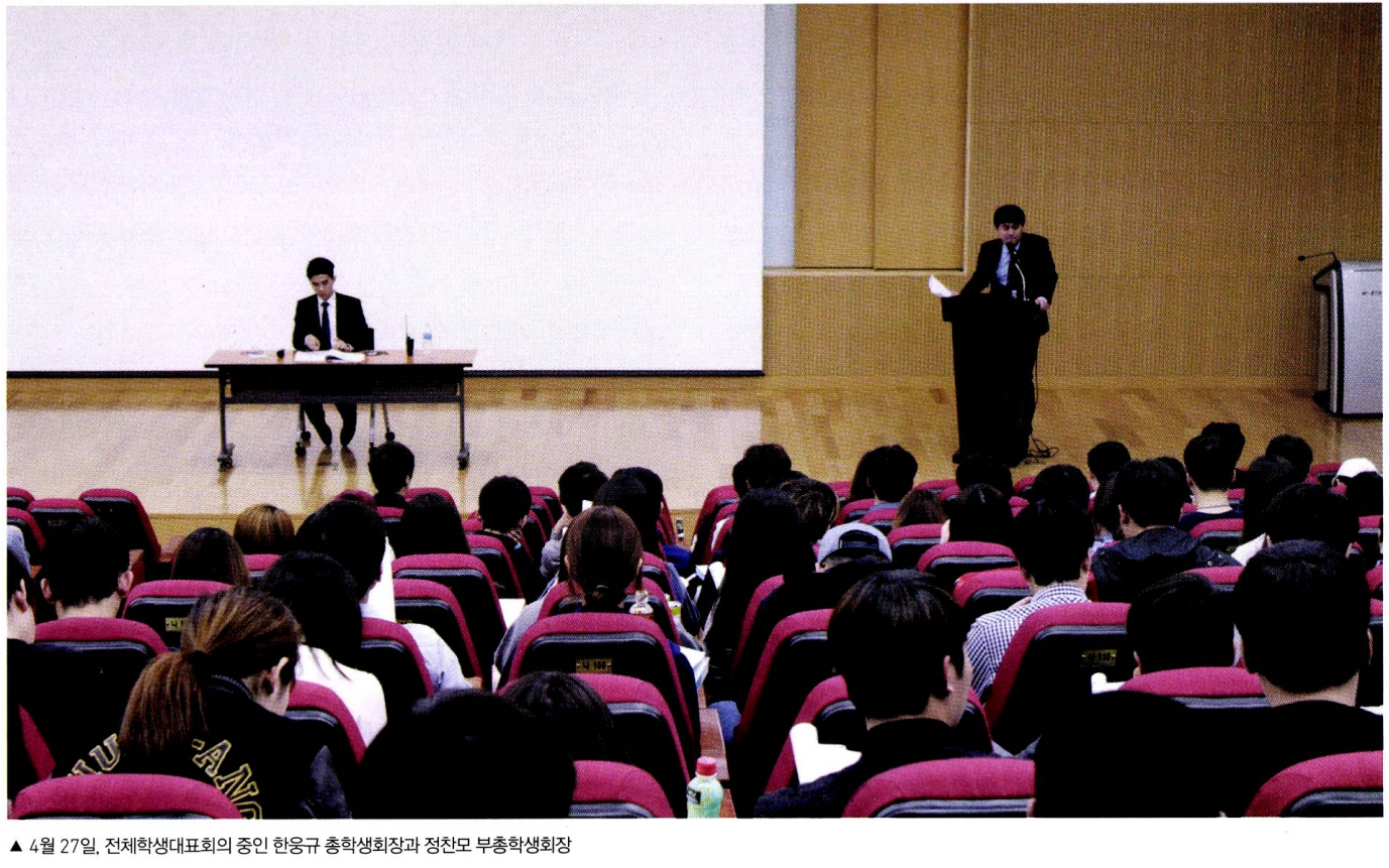 올 2월 26일, 대학본부가 발표한 〈학사구조 선진화 계획안〉은 기존에 진행됐던 구조조정과는 차원이 달랐다. ‘2016년도부터 모집단위를 광역화하여 신입생을 선발 한다’는 내용의 개편안이 당장 내년부터 현실화되면 어떤 일이 벌어질지 감히 누구도 예측할 수 없었다. 논의에서 배제된 학내 구성원들은 아직 불완전한 개편안을 그대로 밀고 나가겠다는 본부의 비민주적 태도에 대자보를 붙이며 반발했다. 학교는 삽시간에 각종 대자보로 가득 찼고 구성원들의 다양한 입장이 떠돌았으나 그 어디에도 학생대표의 입장을 담은 것은 없었다.
