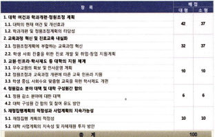 - 교육부 추진 CK사업(지방대학특성화사업)의 경우 평가지표에 학내구성원 합의여부가 포함되어있지 않으며 ACE사업(학부교육 선도대학 육성사업)의 경우 사립대학의 대학평의원회 구성여부를 평가지표에 포함하고 있다. 하지만 대학평의원회의 구성은 이미 사립학교법에서 명시하고 있는 사항이며. 대부분이 교수 혹은 교직원으로 구성된 평위원회 특성상 일반 학생구성원의 의견을 대표하기 힘들다는 점에서 학내구성원의 합의를 평가했다고 보기 어렵다. [본문으로]