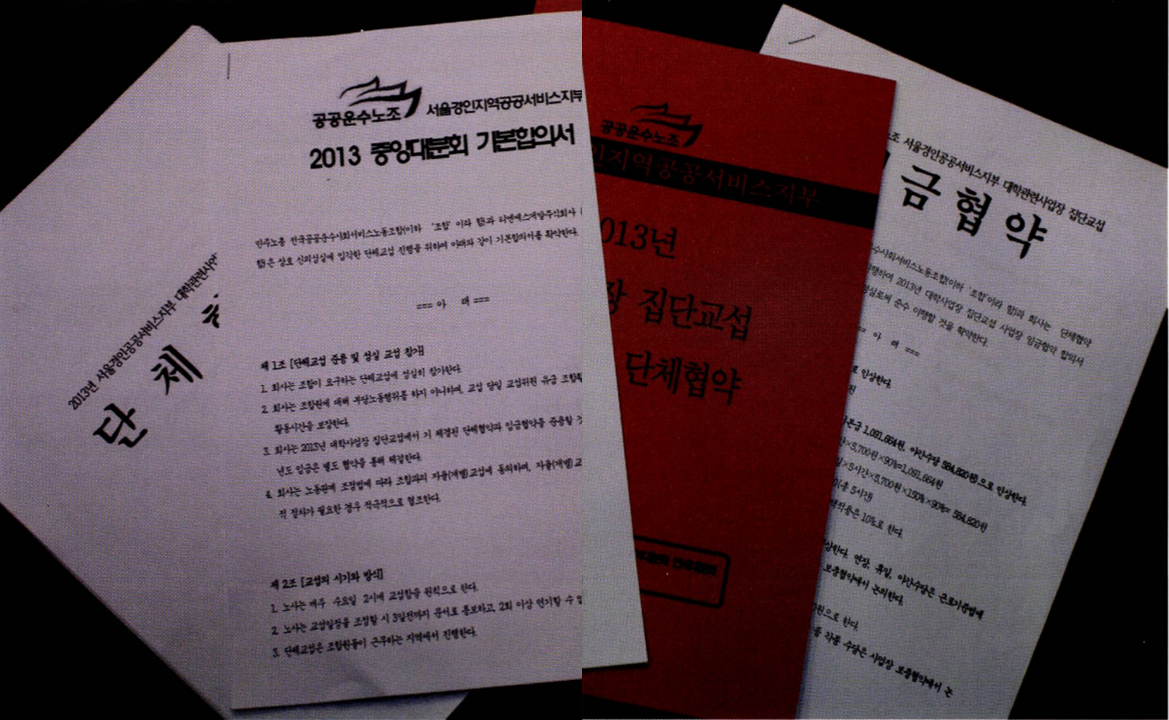 앞의 기사에서 학내 비정규직 노동자들의 실태를 살펴보았다. 이를 개선하기 위해 비정규직 노동자들은 노동조합을 결성해 용역업체와 '교섭'을 진행중이다. 11월 18일을 기준으로 노조와 티엔에스는 현재 8차 교섭이 결렬되었고, 뒤늦게 시작한 금성소방과의 교섭은 3차까지 진행된 상태다.