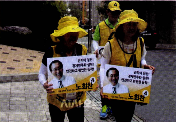 그날 오후 남성역 근처에 위치한 선거사무소를 찾아갔다. 에스컬레이터를 타고 남성역 1번 출구를 나서자 선거철이 임박했음을 온몸으로 느낄 수 있었다. 길 양쪽으로 커다란 선거 현수막을 내건 후보들의 선거사무소가 위치하고 있었다.