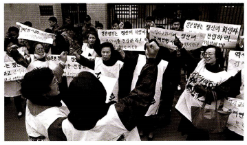 이화여대 영문과 윤정옥 교수의 오랜 개인적 죄책감을 출발점으로 이를 정치적 아젠더로 확대시킨 이화여대 사회학과 이효재 교수, 1970년대부터 원폭 피해자 문제, 일본 관광객들의 기생관광 문제를 꾸준히 제기해 온 교회여성연합회(이하, 교회연)의 조직적 뒷받침에 힘입어 힌국의 ‘위안부’ 운동은 비로소 발아했다. 일제 강점기 ‘위안부’로 끌려가는 것을 피할 수 있었다는 것에 대해 개인적으로 양심의 '가책’을 느끼고 있던 윤정옥 교수는 해방 후 일본군 ‘위안부'가 되었던 여성들의 행방을 찾기 시작했다고 한다. 일제에 의해 강제 연행된 남성들이 속속 귀환하던 당시, 여성들의 귀환 소식을 찾을 수 없었던 윤정옥은 스스로 일본군 ‘위안부' 문제에 대한 연구 조사를 시작하게 되고, 이후 거의 평생을 일본군 '위안부' 문제를 해결하는 운동에 재산과 시간과 노력을 다한다. 잊지 말아야 할 점은 이들의 만남이 집단적 운동으로 성장한 배경에 1970-80년대 민주화운동과정에서 성장한 진보적인 여성운동단체들의 실천적 동력과 적극적 연대가 있었다는 점이다.