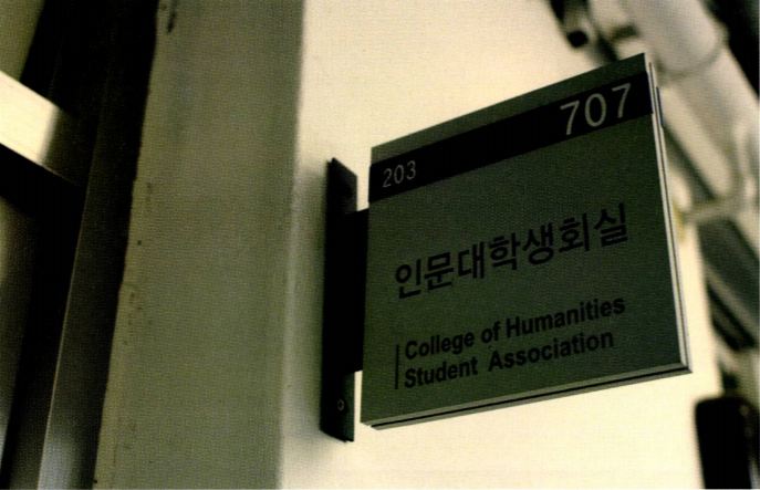2013년 가을겨울 〈멀리 하기엔 너무도 가까운〉 인문대 학생회실 팻말 사진이다.