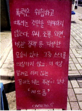 시내를 걷다 보면 몇 걸음마다 고깃집, 치킨집이다. 무한리필 고깃집에는 요리사 복장을 하고 웃으며 어깨 동무하고 있는 돼지와 소 캐릭터가 있다. 그리고 "맛없는 고기를 먹기엔 인생이 너무 짧다" 따위의 문구가 쓰여있다. 그곳에서 고기를 팔고 구워 먹는 우리의 모습에는 중요한 맥락이 삭제되어 있다. 동물의 고통 말이다.