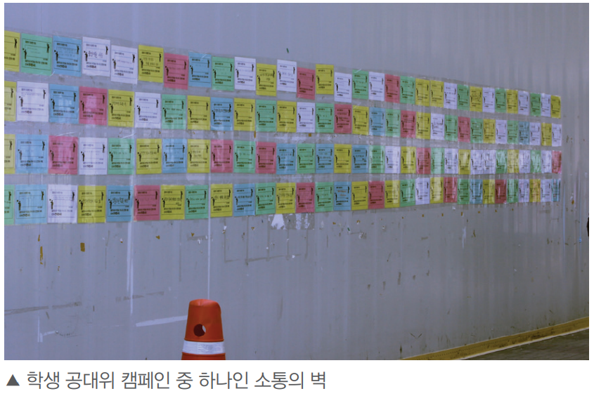 4월 초 해방광장과 정, 후문 쪽에서 매일 들리던 말이다. 그곳에서 몇 주간 매일 학생들이 광장에 나와 사람들에게 유인물을 나눠주고 서명을 받았다. 그 뿐만이 아니다. 그들은 강의실에 방문해 구조조정안을 설명하고 서명을 받기도 했다. 교수들도 목소리를 내기 위해 광장에 나왔다. 캠퍼스는 대자보로 도배됐고, 갖가지 현수막이 내걸렸다.