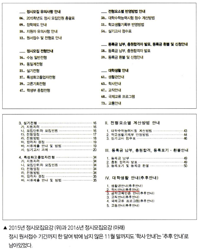 단과대학에서 광역모집 입학생을 관리하기로 의견을 모은 것이 6월 11일에 열린 8차 대표자 회의에서였다. 그리고 그 이후 논의는 크게 진전되지 않았다. 11월이 다 되어서야 단과대학별로 관리방안을 취합하고 이를 학사팀에서 종합하기 시작했다. 정서 원서접수 기간까지 한 달여의 시간밖에 남지 않은 11월 말이 되어서야 관리방안이 완성되었다. 정시모집요강 뒤편에 항상 게시되던 ‘학사 안내’는 11월 말까지 '추후 안내’로 남아있었다.