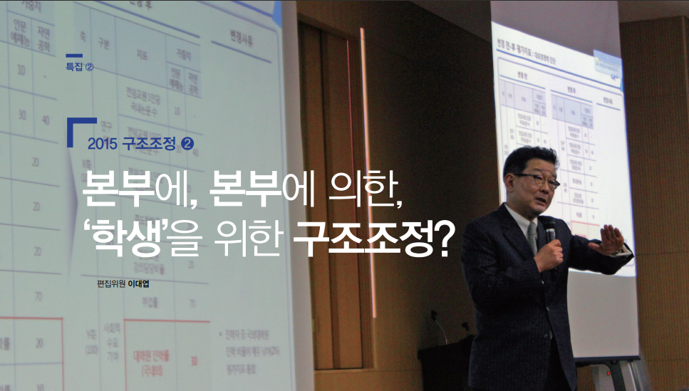 무르익어가는 봄과 함께 갈등은 일단락 됐지만 문제는 여전히 남아있다. 광역화 자체가 내포하고 있는 위험은 정시모집에 국한된다고 사라지는 것이 아니기 때문이다. 무엇보다 대학본부는 협의체에서 계획안의 내용에 근거해 논의를 이끌 가능성이 크다. 이번 협의체가 2017년도 입학전형계획까지 논의하는 장기 프로젝트인 만큼 계획안의 허점을 반복해선 안 된다. 구조조정 계획안의 문제점을 되짚어 봐야 하는 이유다.