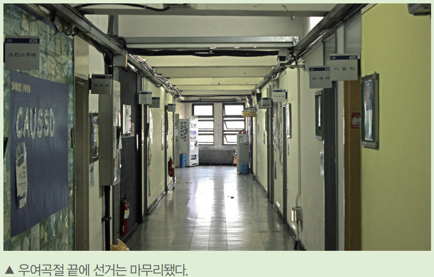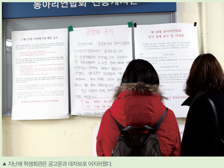 그 와중에 설상가상으로 선거인 명부에서 오류가 발견됐다. 선거 시스템의 문제가 드러나면서 선거는 진실게임이 돼버렸다. 결국 대학 본부가 개입했고 공방전은 찝찝하게 일단락됐다. 단선으로 진행된 선거는 4월에야 마무리됐다. 선거가 해를 넘기며 다섯 달 만에 남긴 것은, 상처뿐이었다.