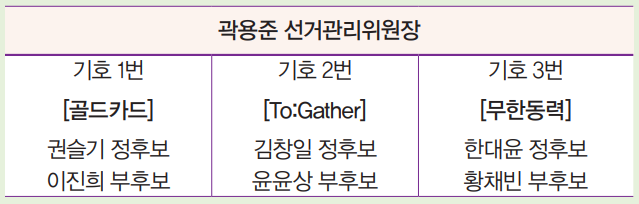 지난해 11월 동연 선거에서는 총 3개 선본이 출사표를 던졌다. 선관위는 동연 회칙에 따라 동연 회장인 곽용준 선거관리위 원장(선관위원장)을 필두로 꾸려졌다.