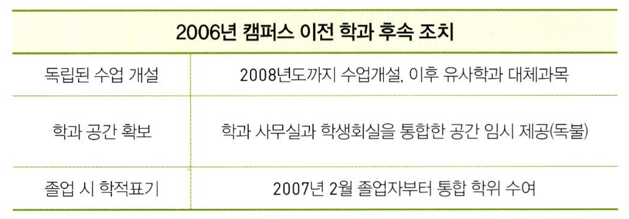대학본부는 당시 대상학과에 독립 공간 제공, 전공과목 개설, 통합학위수여 등의 대책을 마련했지만, 미봉책이었다. 무엇보다도 학적과 관련된 말이 끊이지않았다 반발을 줄이기 위해 서울과