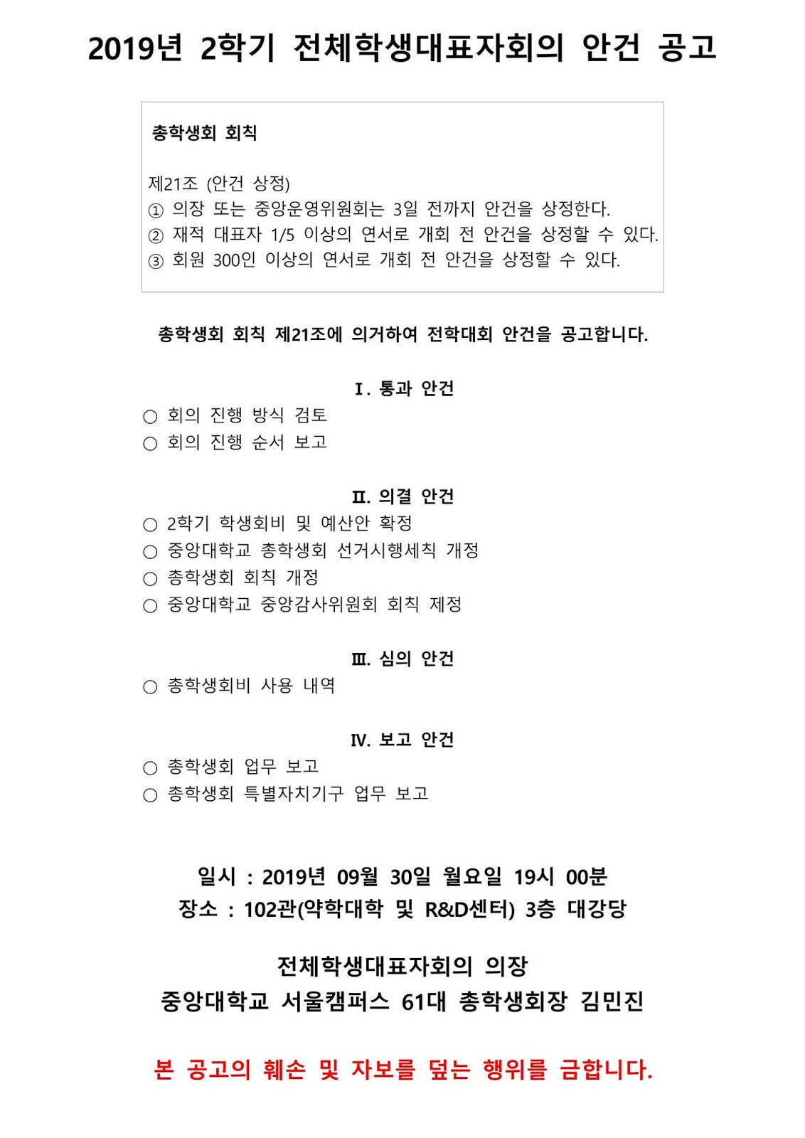 과 삭제의 근거로 작용할 수 있다. 허가를 받기 위해 총학생회장의 의사가 게시물 내용에 개입될 여지도 있다. 총학생회장은 이미 한 차례 '사전 허가를 받지 않았다는 이유로 성평위의 학생총회 홍보 게시물을 삭제하라고 요구했다. 1차 학생총회 토의 당시 총학생회가 가장 많이 지적받았던 문제는 '홍보 부족' 이었다. 성평위의 게시물이 성공적인 학생총회 개회를 도울 수 있었음에도 총학생회장은 삭제를 지시했다. 학생총회 홍보 게시물을 삭제시킬 만큼 총학생회장이 학생총회 개회보다 우선순위로 둔 것은 무엇이었을까.