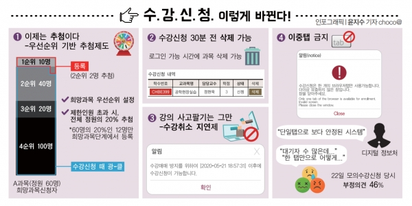 [3] “20년 만의 수강신청제 개편, 우선순위 추첨제 도입”,고대신문,2020.05.31.