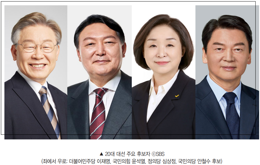 이번 대선을 바라보며 허탈감을 느낀 것은 학우 A만이 아닐 테다. 어느 때보다도 과열된 정권심판론, 정권창출론 사이에서 유의미한 정책 논쟁은 실종됐다. 물론 양당 후보들에게 공약이 없던 건 아니다. 더불어민주당 이재명 후보는 자신의 트레이드마크인 ‘기본 시리즈’ 정책1)을 내세우며 여론의 시선을 끌었다. 국민의힘 윤석열 후보 역시 보수야권 결집을 위한 친시장·친기업 정책을 연일 발표했다. 하지만 어느 진영의 메시지든 간에 종국에는 ‘대장동 특검하라’, ‘윤석열 게이트’ 같은 정략적 구호로 귀결되곤 했다. 기성언론은 그들의 소모전을 받아 적고 확대재생산 하기에 바빴다. 이러한 상황에서 당연히 ‘제3지대’2)가 주목받을 리 만무했다.