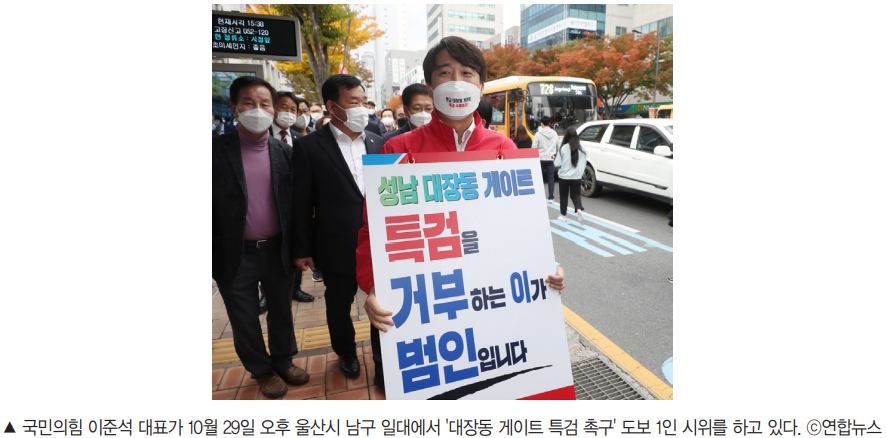 여야의 소모적인 공방은 2021년 국정감사에서 정점을 찍었다. 국정감사는 입법부가 국민을 대표해 행정부를 감시·견제하는 자리다. 제대로 된 국정 질의와 토론으로 가득 찼어야 할 감사장은 아니나 다를까 대선 일정과 맞물려 양당 후보의 전초전으로 전락했다. 어느 기관의 감사장이던 대선 이슈는 뜨거운 감자였다. 심지어 선거와 아무 관련이 없는 기관 국감조차 대장동 개발 의혹을 둘러싼 여야 갈등으로 파행을 빚기도 했다.3) 경기도청과 대검찰청 국정감사는 아예 이재명·윤석열4) 공청회로 둔갑해버렸는데, 의원들의 격론 속에서 도정과 국정에 대한 국민의 알 권리는 철저히 외면됐다.