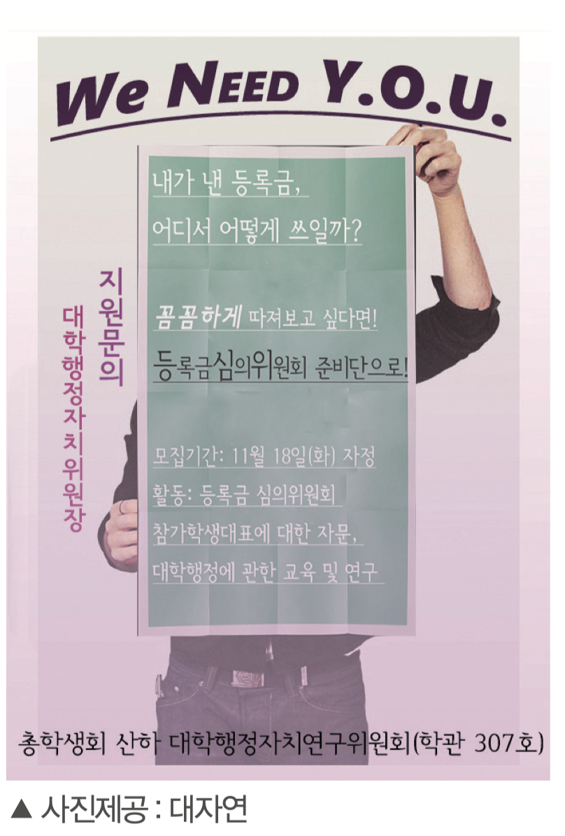 그 중 서울대의 대학행정자치연구위원회(이하 대자연)가 돋보인다. 대자연은 2011년 ‘서울대학교 법인화’가 이루어진 이 후 학생사회 대응의 일환으로 만들어졌다. ‘법인화’라는 엄청난 흐름 속에서 학생회가 단지 외부의 자문에 의존 하여 판단을 내리기는 어려웠기에 구체적인 변화를 가늠하기 위한 방책으로 연구기관을 만들기로 결정한 것이다. 2014년도 대자연 위원장이었던 양기원씨는 “대자연은 학내 거버넌스[9]와 재정 문제에 대하여 학생사회가 자체적으로 자료의 축적, 연구, 분석을 진행한다는 시도로서 그 의미를 찾을 수 있을 것 같다”고 말한다. 이어 “학생회가 바뀌더라도 나름의 독립성과 전문성을 유지하는 산하기구로서 비교적 장기적인 안목에 따라 학생회가 나아갈 방향을 제시할 수 있다”고 밝혔다.