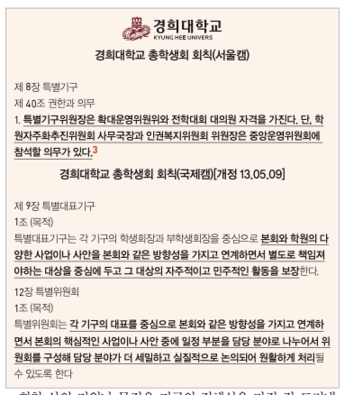그러면 타학교의 경우는 산하기구를 학생 자치에 어떤 식으로 활용하고 있을까. 먼저 몇 개 학교의 총학생회 회칙을 살펴보자.