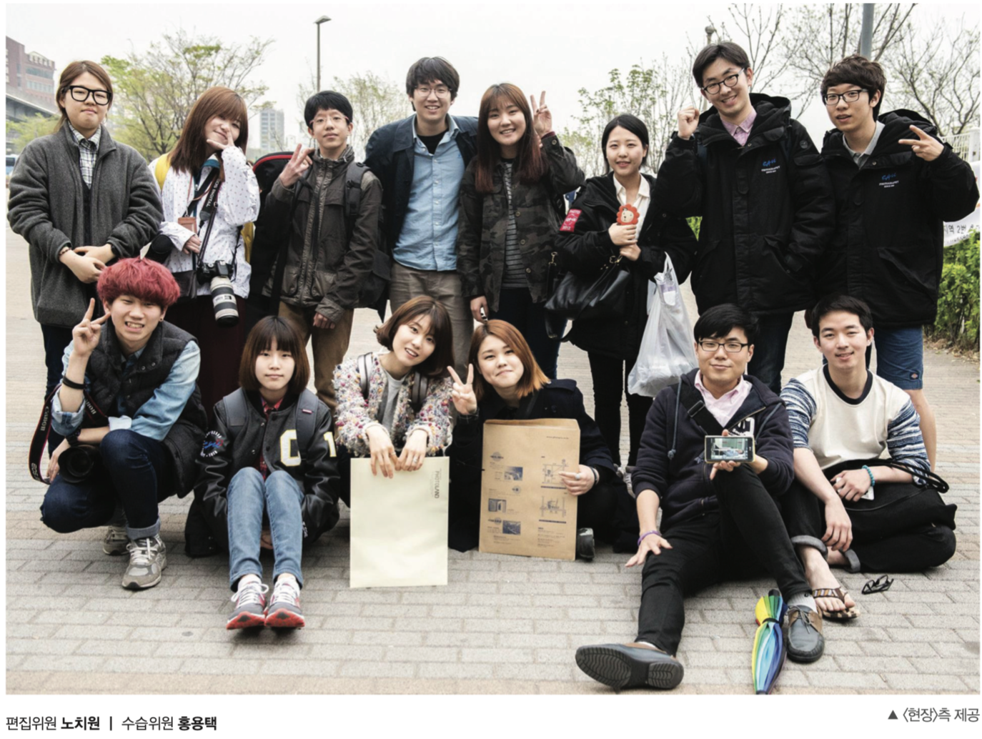 제주 강정마을, 삼척 핵발전소 건설현장, 밀양 송전탑 등, 문제적 현장이라면 전국 어디라도 카메라를 챙겨 달려가는 사람들이 있다. 전문 사진작가들이 아니다. 중앙대 사진학과 내 동아리인 <소셜 다큐멘터리 사진집단 현장>이다. 민주화운동이 활발하던 85년도부터 시작된 유서 깊은 이 동아리는, 그동안 문제적인 사회 현장들에서 소외받는 약자들과 연대하고 그들의 목소리를 사진으로 알려왔다. 그 이름처럼 현장에 있어 아름다운 동아리 <소셜 다큐멘터리 사진집단 현장>을 만났다.