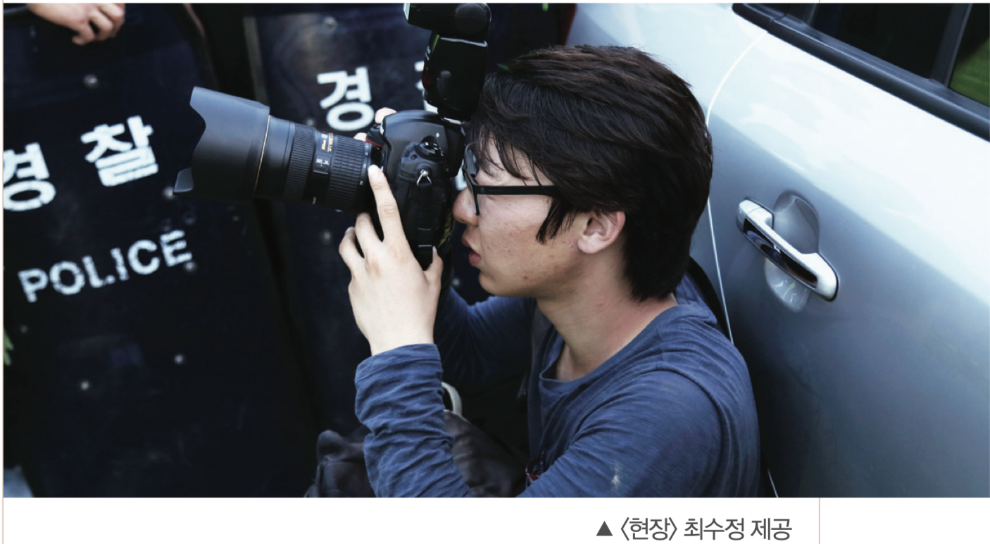 중앙문화 | 본질적인 질문을 하려고 해요. 현장에 나가면 많은 사람들이 있잖아요. 글 쓰는 기자, 영상 취재하는 카메라 맨, 혹은 직접 시위를 하는 사람도 있고요. 그 중에서 현장 은 다큐멘터리 사진을 맡고 있는데, 하필 왜 ‘사진’일까요?