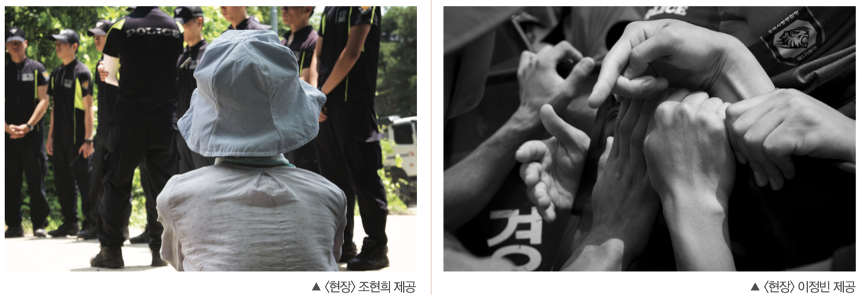 중앙문화 | 이제 실제 현장의 얘기를 듣고 싶네요. 용산참사, 제주해군기지, 밀양송전탑 등 여러 현장에서 사진을 찍으셨는데, 힘든 상황이라든가 느낀 바가 많을 듯해요.