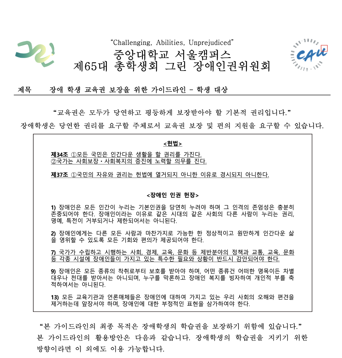: 중앙대학교 페미니스트 연합, 장애인권을 고민하는 중앙대학교 사람들