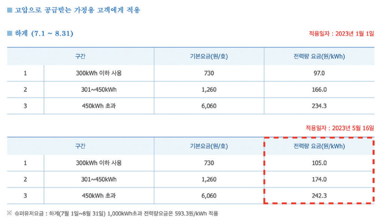- 4인 가구 평균 전기 사용량 332kWh, 가스 사용량 3,861MJ을 기준으로 한다. 결과적으로 2023년 1분기 대비 평균 3,020원과 4,431원을 더 부담해야 하는 셈이다. [본문으로]