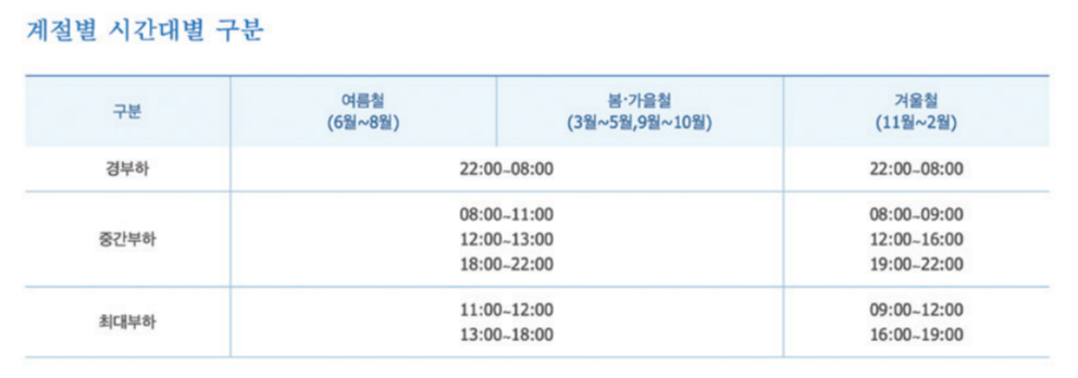 주택용 전력(저압) 전기요금표. 한국전력공사.