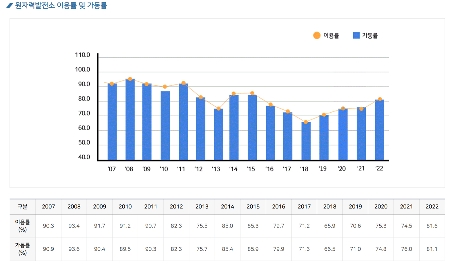 실제로 한전의 44조 적자가 원전 가동률 및 이용률의 감소 때문이라 하기엔 다소 비약이 있다. 탈원전을 추진했던 문재인 정부 시기 (2017~2022) 5년 간 평균 원 이용률과 가동률은 각각 73.2%, 73.4%를 기록했다. 재임 기간 중 가동·이용률이 가장 높았던 2022년엔 32조 6천억원의 적자가 발생한 반면, 가장 낮았던 2018년에는 2080억원에 그쳤다. 이는 원전 활성화가 최고 수준에 달했던 시기와 비교했을 때도 유의미한 차이를 보인다. 2008년 가동·이용률이 90%를 넘었지만 당시 한전의 적자는 3조원에 달했다. 탈원전이 한전 적자의 결정적인 원인이었다면 원전 이용률이 가장 숫자를 기록한 2018년에 적자가 가장 많아야 한다. 탈원전이 한국 에너지 위기의 원인이라 지적하지만 실상 해외 연료 수입비의 영향이 절대적임을 알 수 있다. 2022년에 가장 많은 적자가 발생한 이유는 국제 에너지 자원 수입액 증가의 영향이 가장 크다. 현 정부의 원전 만능주의는 복합적인 한전 적자 발생 원인에서 극히 일부만 조명한 것이다.