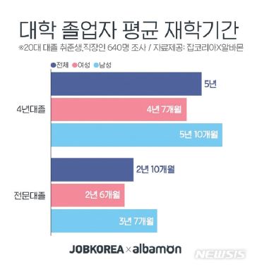 - 잡코리아, “4년제대학 졸업까지 평균 ‘5년’”, https://www.jobkorea.co.kr/goodjob/tip/view?News_No=15654&schCtgr=0&TS_