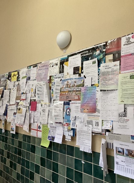 ▲(좌) 예나대학교 멘자, (중) 카페테리아, (우) 홍보물 부착 게시판