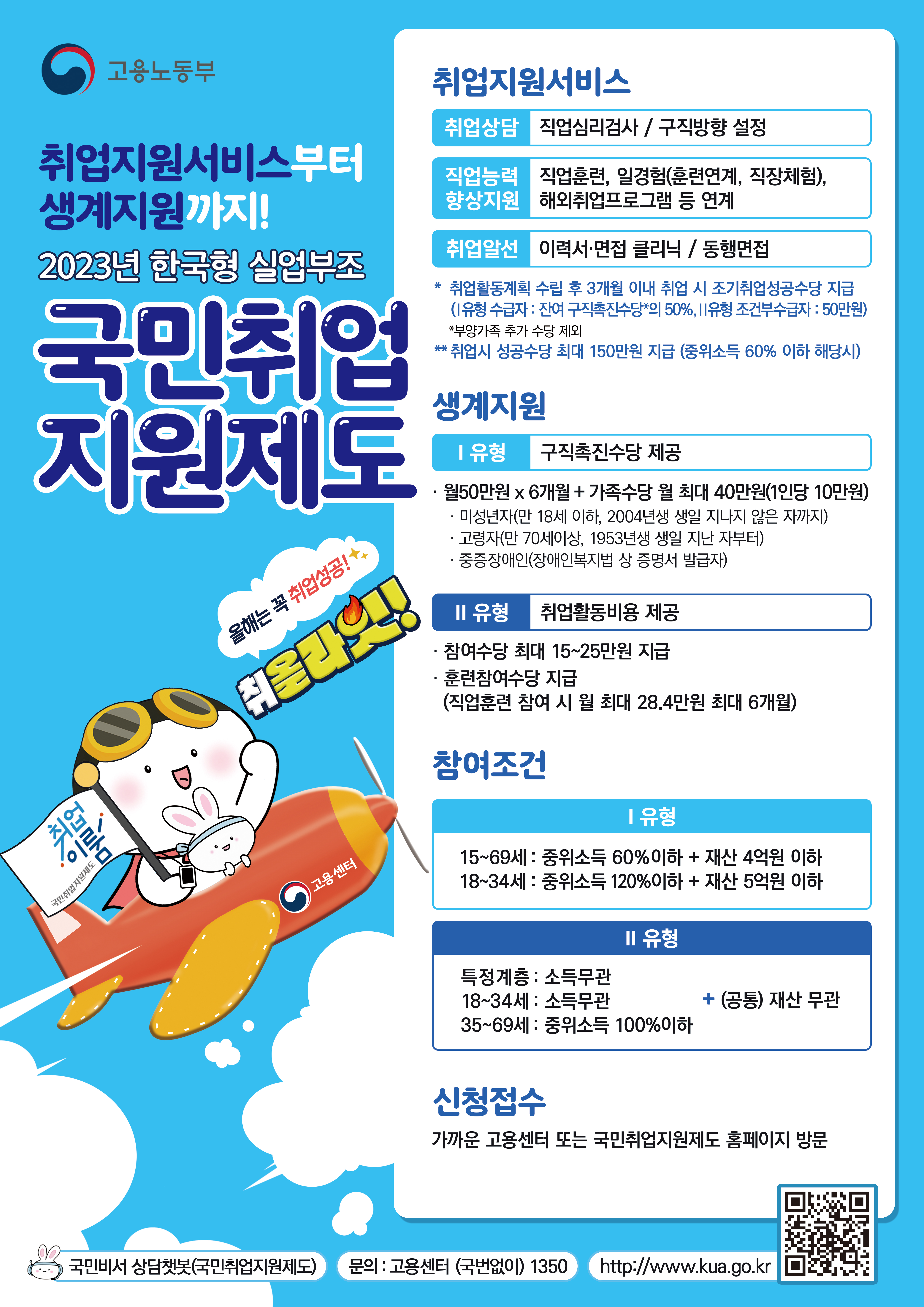 1) 국민취업지원제도 : 취업을 원하는 사람에게 취업지원서비스를 종합적으로 제공하고 저소득 구직자에게는 생계를 위한 최소화의 소득을 지원하기 위한 제도