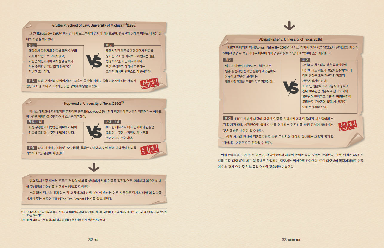 - 법률신문, “美 연방대법원 "대입 시 소수인종 우대 정책 위헌" …바이든 "정상적 법원 아냐" 반발”, 2023.06.30. 홍윤지. [본문으로]