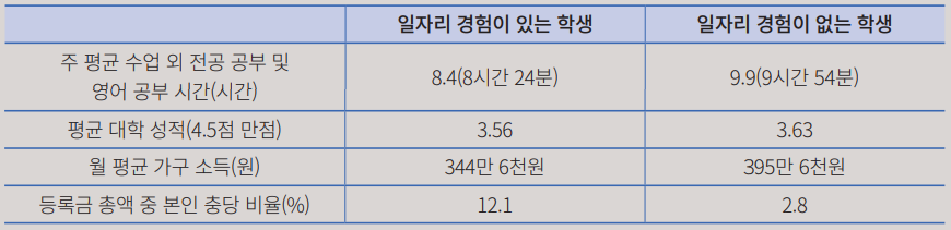▲ 일자리는 교외 일자리만 포함되며, 교내 근로 등은 포함되지 않는다. 한국직업능력개발원6.