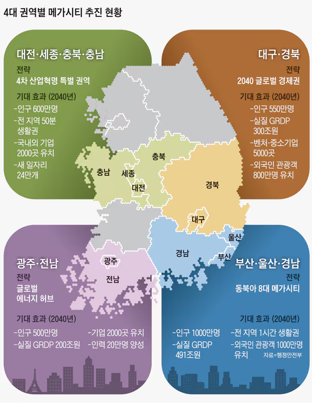 - 서울경제, “'4대 특구+3개 특별자치권' 메가시티 조성…수도권·지방 격차 줄인다”, 2023.11.01, 김창영. [본문으로]