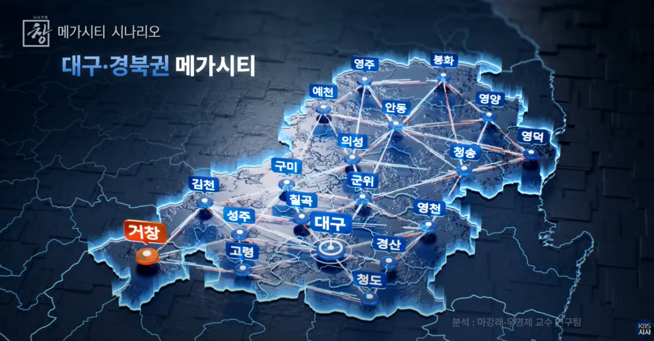 따라서 행정구역대로만 도시를 묶는 것이 아닌, 그 지역 주변 있는 도시들을 자연스럽게 묶는 것으로 생각해야 한다. 경남에서 조금 올라갔다고 해서 “여기는 경북이니까 부울경 메가시티에 포함되지 않아요!”라고 이야기하지 말고, 서로 인접한 도시들을 포괄적으로 생각해야 한다는 것이다.