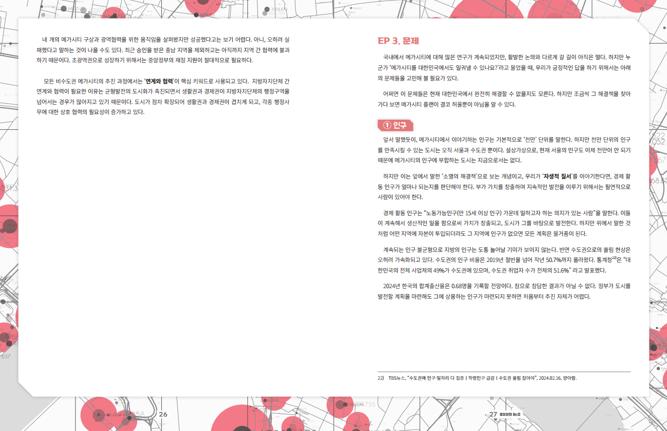 - TBS뉴스, “수도권에 인구·일자리 다 집중ㅣ학령인구 급감ㅣ수도권 쏠림 잡아야”, 2024.02.16, 양아람. [본문으로]